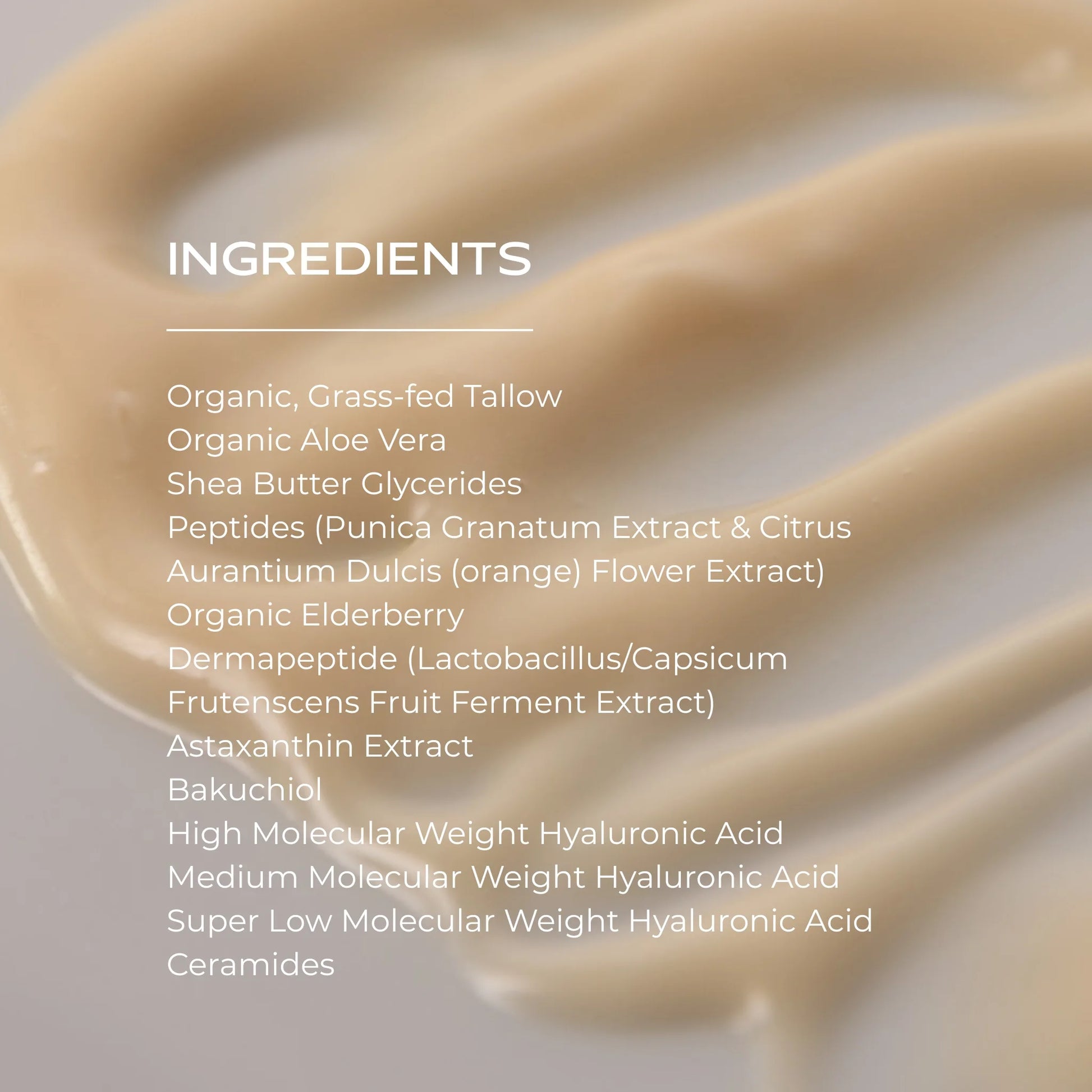 "It took us 18 months to do what no one else in skincare has done—create a truly organic, grass-fed tallow moisturizer infused with five of the most powerful actives in modern skincare. We refused to compromise: no toxins, no shortcuts."